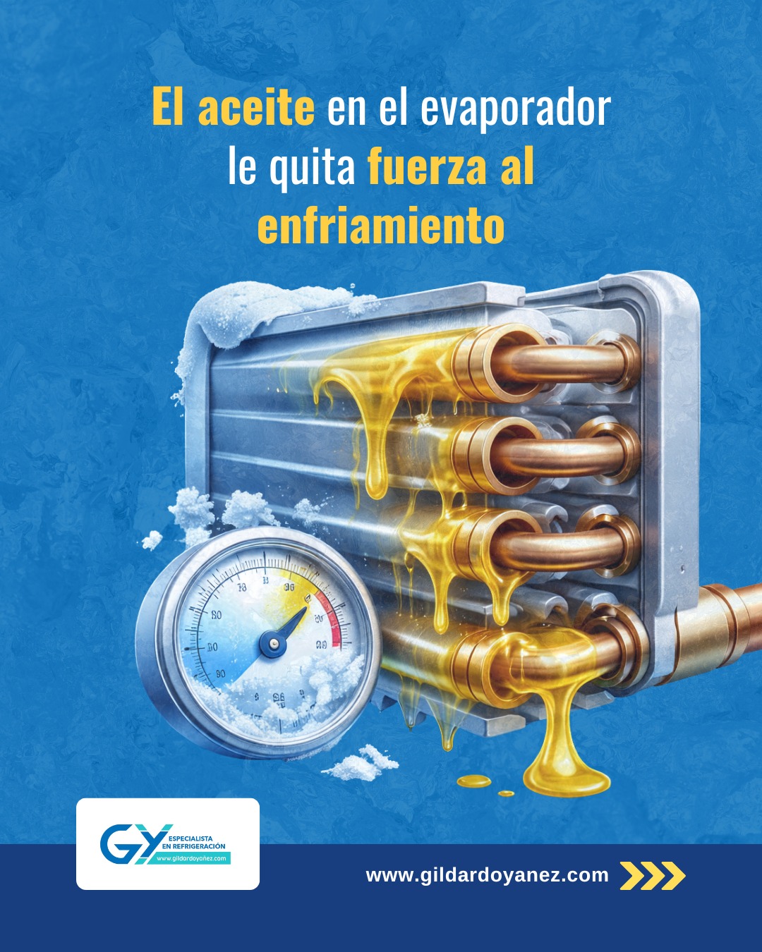 El tema no es el aceite, es dónde se está quedando. Cuando se acumula en el evaporador, puede formar una película sobre la tubería y baja la transferencia de calor; por eso el sistema empieza a rendir menos y las lecturas se vuelven confusas. Antes...